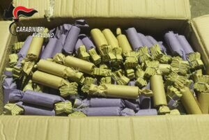 Le immediate verifiche effettuate dai militari dell’Arma hanno confermato che all’interno degli scatoli vi erano esplosivi pirotecnici.