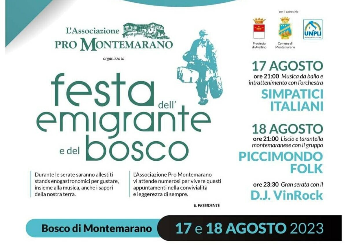 Arriva la 39° Festa dell’emigrante e del bosco, che si terrà giovedì 17 e venerdì 18 Agosto 2023 a Montemarano.