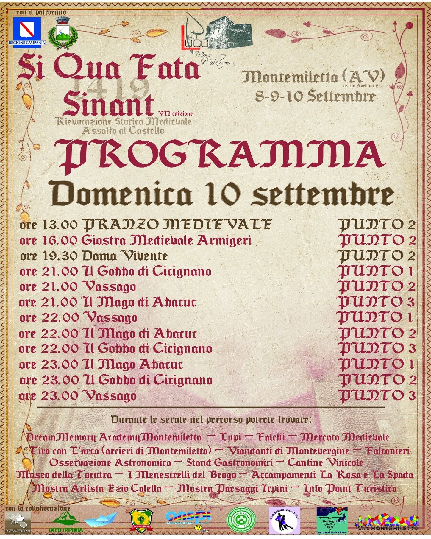 E’ tutto pronto per la VII edizione del “1419-Si qua Fata Sinant- Assalto al Castello”, evento che si terrà a Montemiletto nei giorni 8-9-10 settembre 2023.