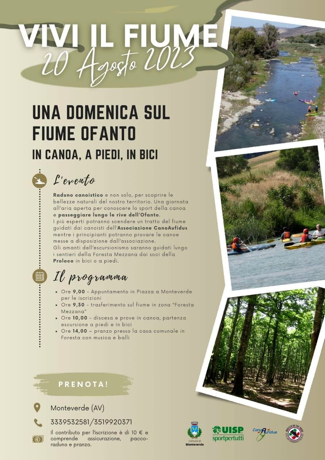 L’Associazione CanoAufidus e la Proloco di Monteverde organizzano per domenica 20 Agosto 2023, a Monteverde, l’evento “Vivi il Fiume.”