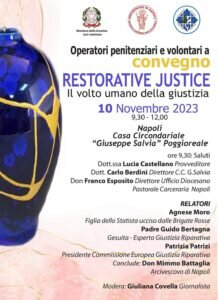 L’ufficio diocesano della Pastorale Carceraria di Napoli, in collaborazione col Provveditorato Penitenziario della Campania e la Conferenza Volontariato e Giustizia Regionale ha organizzato il 10 novembre 2023: Restorative Justice, il volto umano della giustizia; un convegno sulla giustizia riparativa, rivolto agli operatori penitenziari e al volontariato carcerario, con inizio alle ore 9.30, che avrà luogo all’interno della Casa Circondariale Napoli “Poggioreale – Giuseppe Salvia”, alla via Nuova Poggioreale, 167.