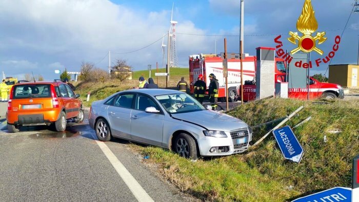 La squadra dei Vigili del Fuoco del distaccamento di Lioni, durante la mattinata, è intervenuta nel comune di Rocca San Felice, sulla SS 303 al Km.18,100, per un incidente stradale che ha visto coinvolte due autovetture. Nel violento impatto rimanevano feriti i due rispettivi conducenti, un uomo ed una donna, i quali venivano trasportati dai sanitari del 118 intervenuti presso l’ospedale di Sant’Angelo Dei Lombardi per essere sottoposti a cure mediche. I veicoli incidentati sono stati messi in sicurezza.