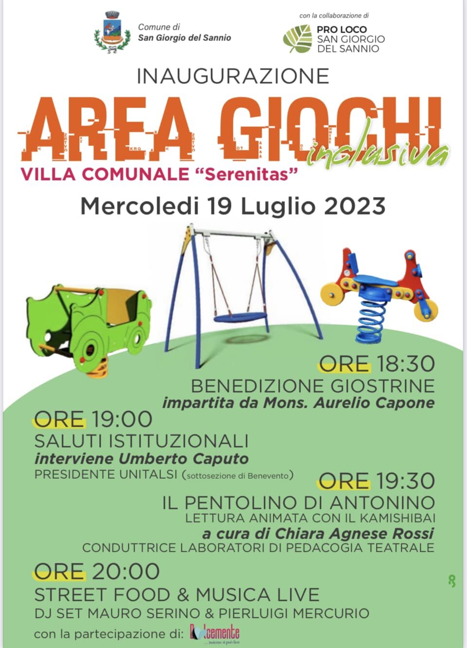 Il prossimo mercoledì 19 Luglio 2023 alle ore 18:30 in Villa Serenitas si svolgerà la benedizione dell’area giochi inclusiva.