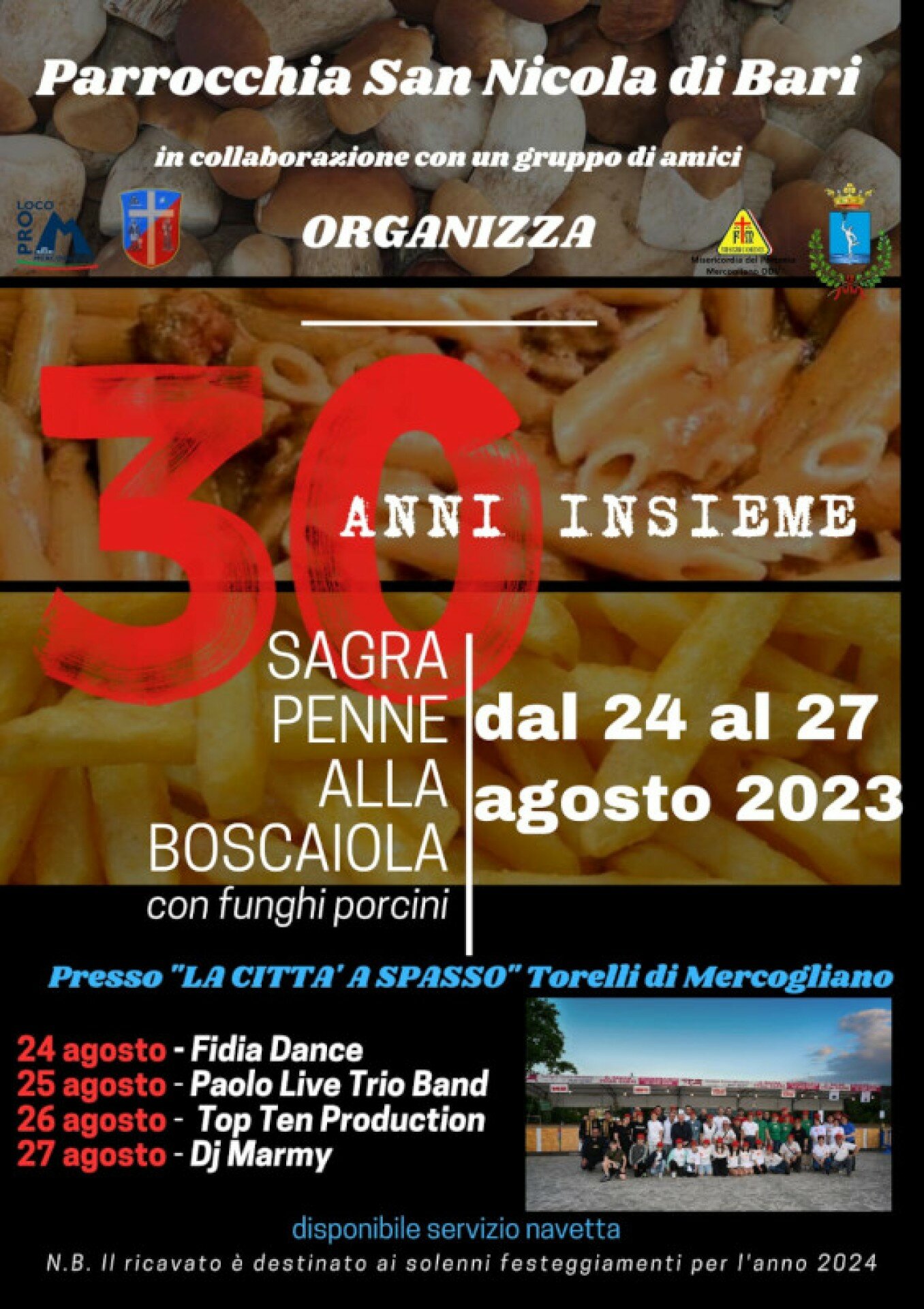 Fervono i preparativi per la 30esima edizione della Sagra della Penne alla Boscaiola, che si terrà da stasera, giovedì 24 a domenica 27 Agosto 2023, a Torelli di Mercogliano.