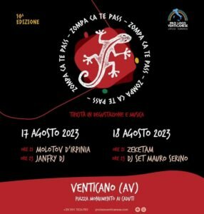 Tutto pronto per la decima edizione del “Zompa Ca Te Pass” che si terrà domani giovedì 17 e venerdì 18 Agosto 2023, presso la Piazza Monumento ai Caduti a Venticano.